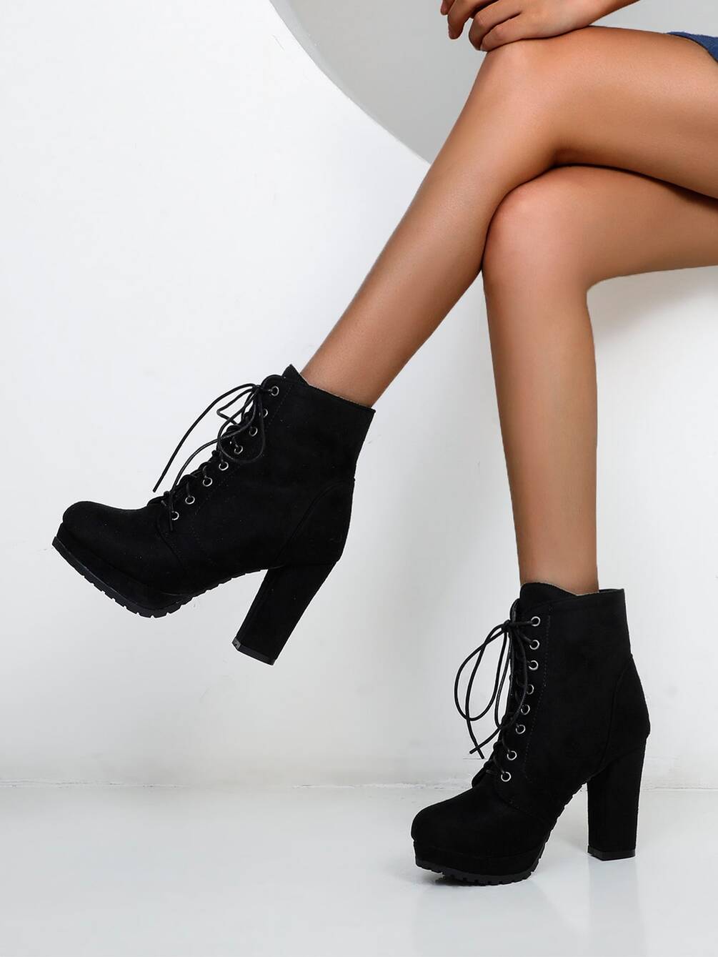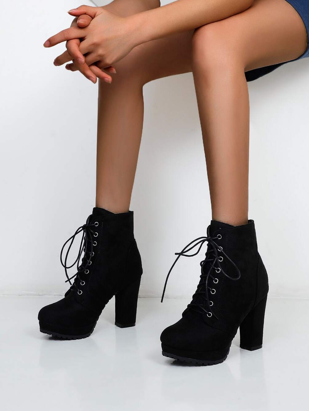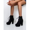 Women Minimalist Lace Up Side Zip Chunky Heeled Combat Boots