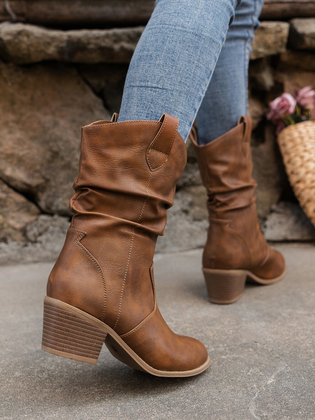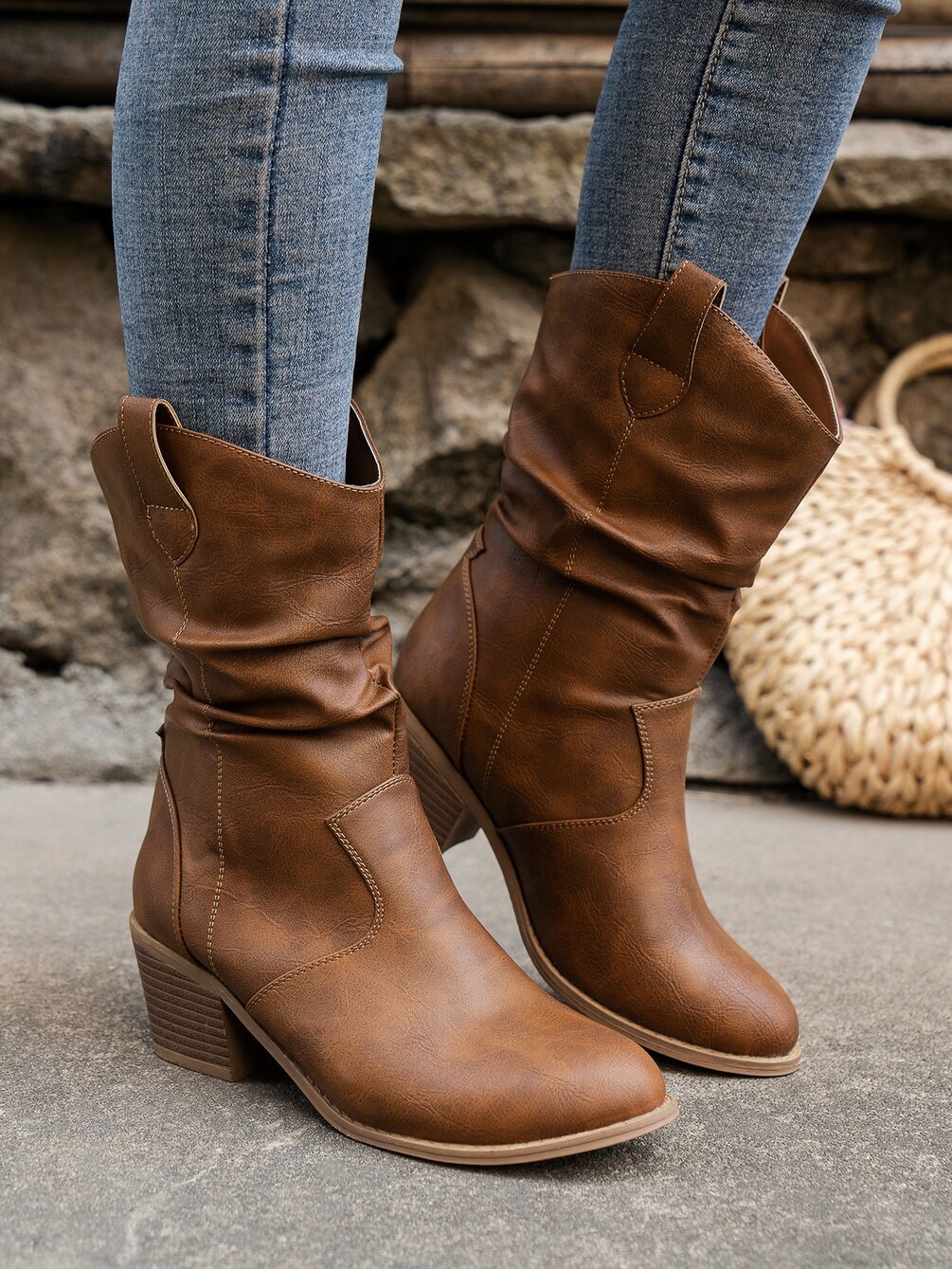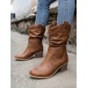 Patch Decor Fashion Boots Pointed Toe Block Heel Western Boots For Women