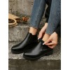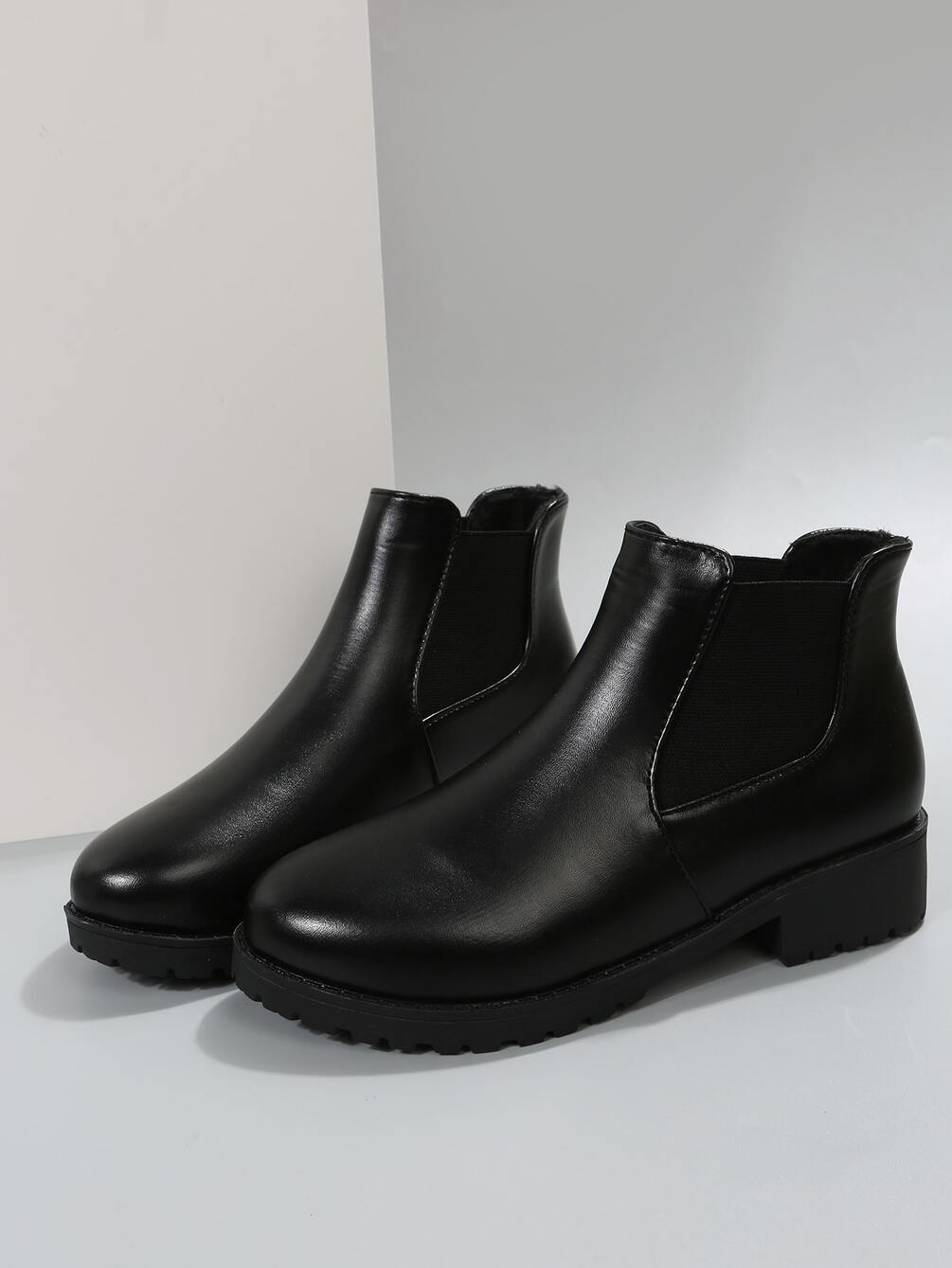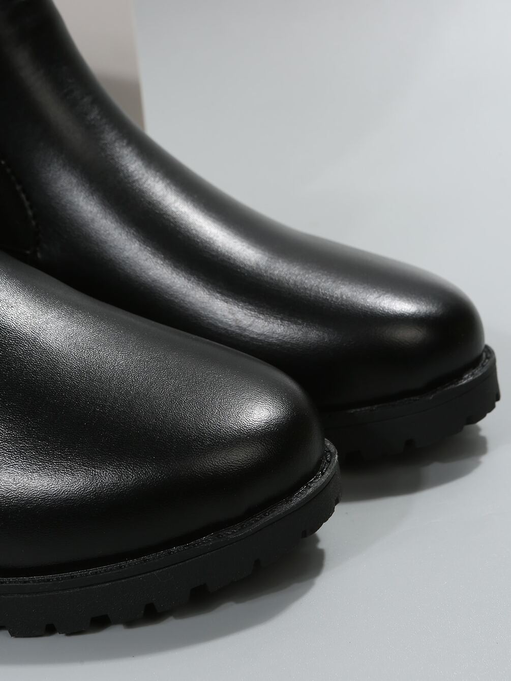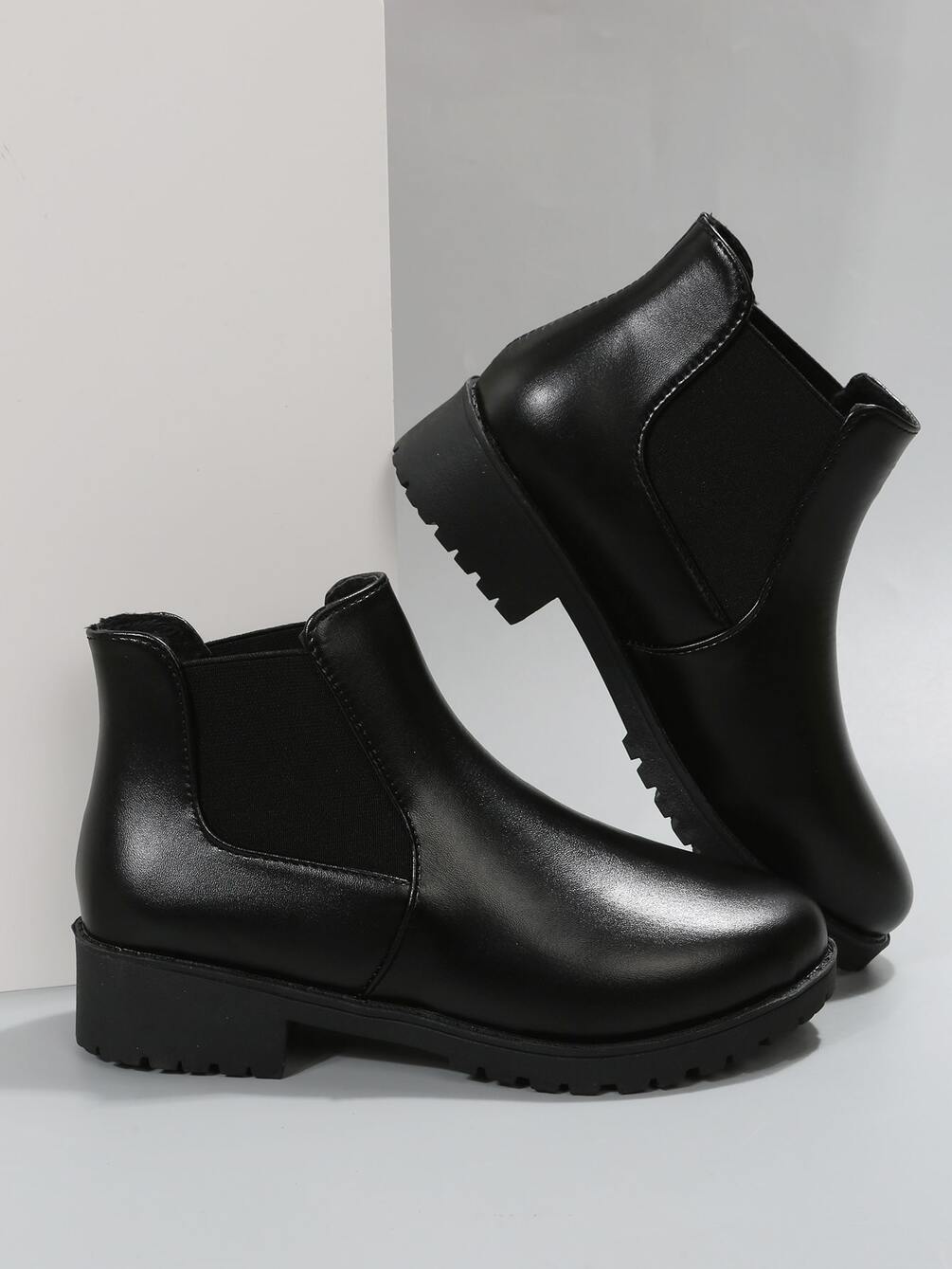 Elegant Black Chelsea Boots For Women, Stitch Detail Point Toe Chunky Heeled Boots
