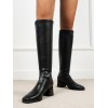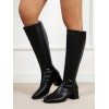 Women All Black Square Toe Chunky Heeled Classic Boots