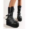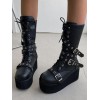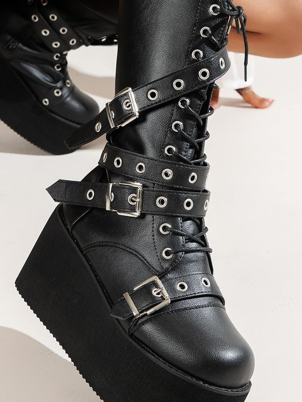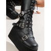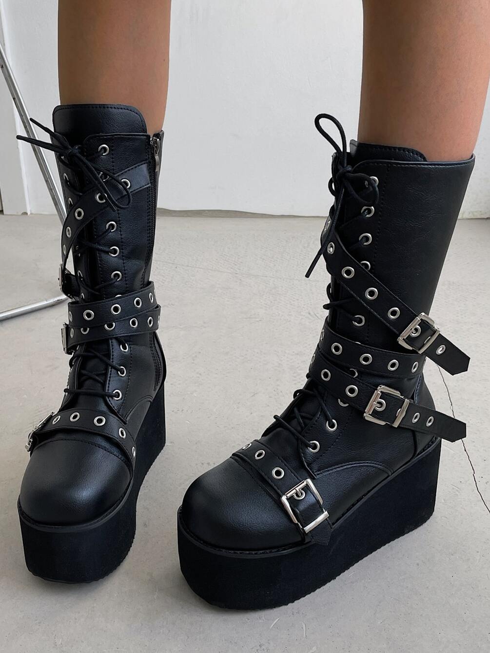 Eyelet & Buckle Decor Lace-up Front Combat Boots