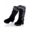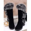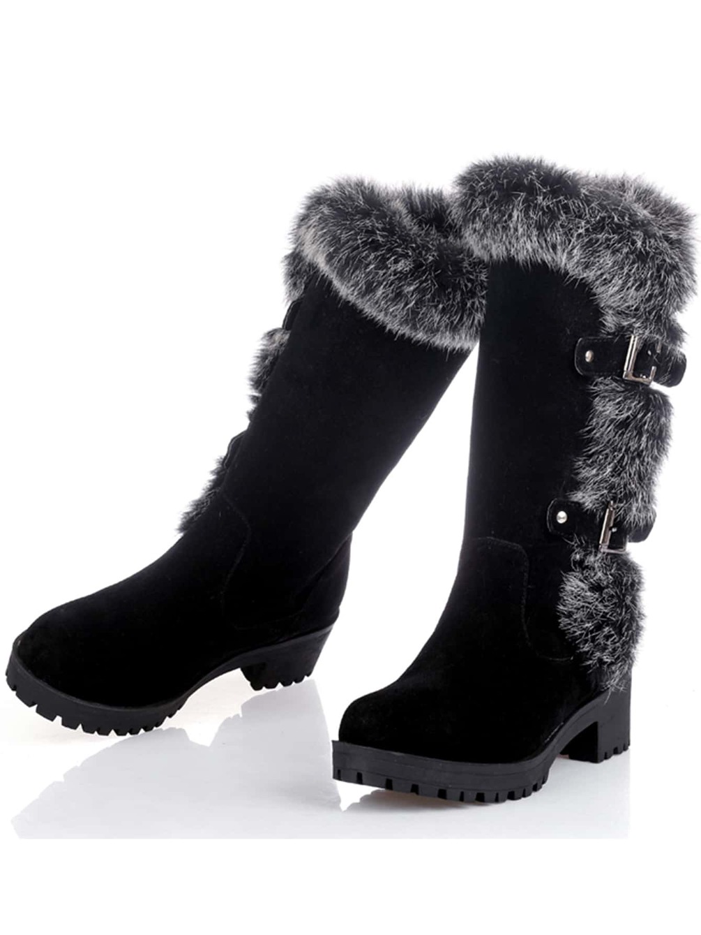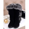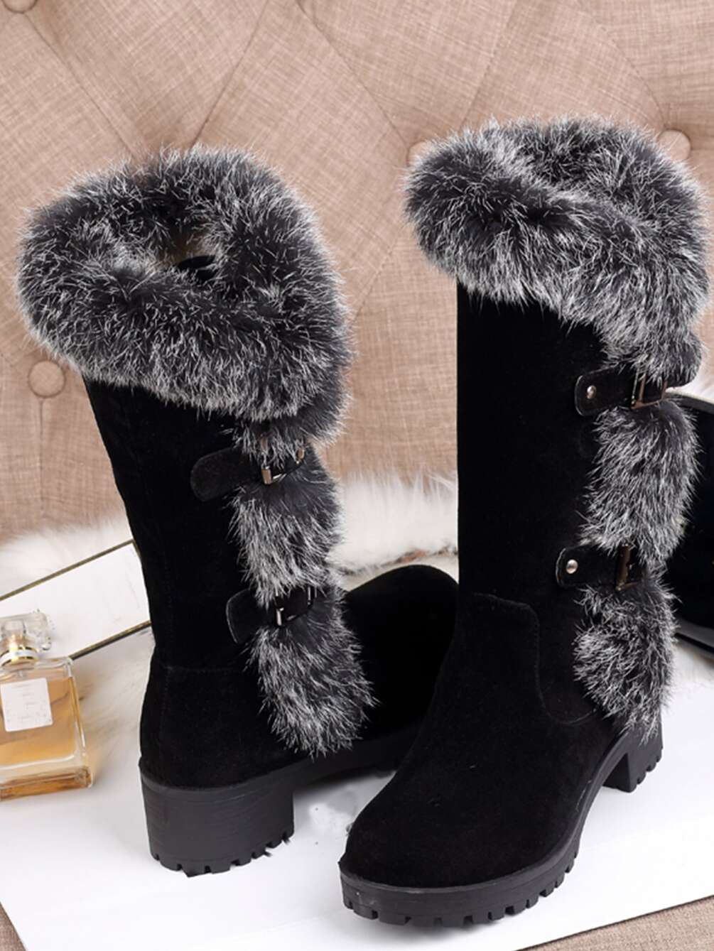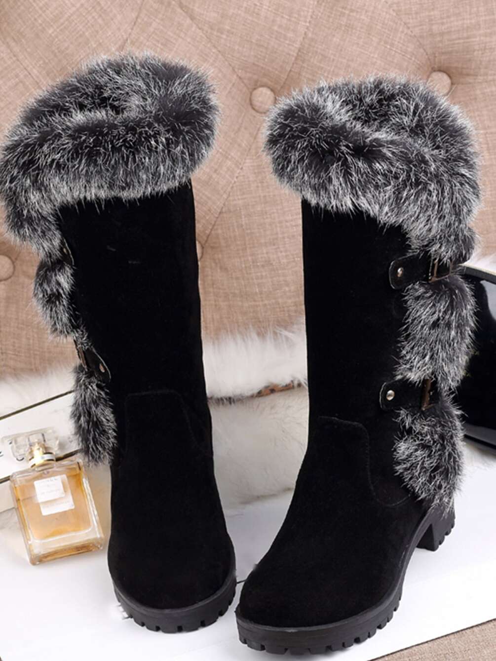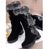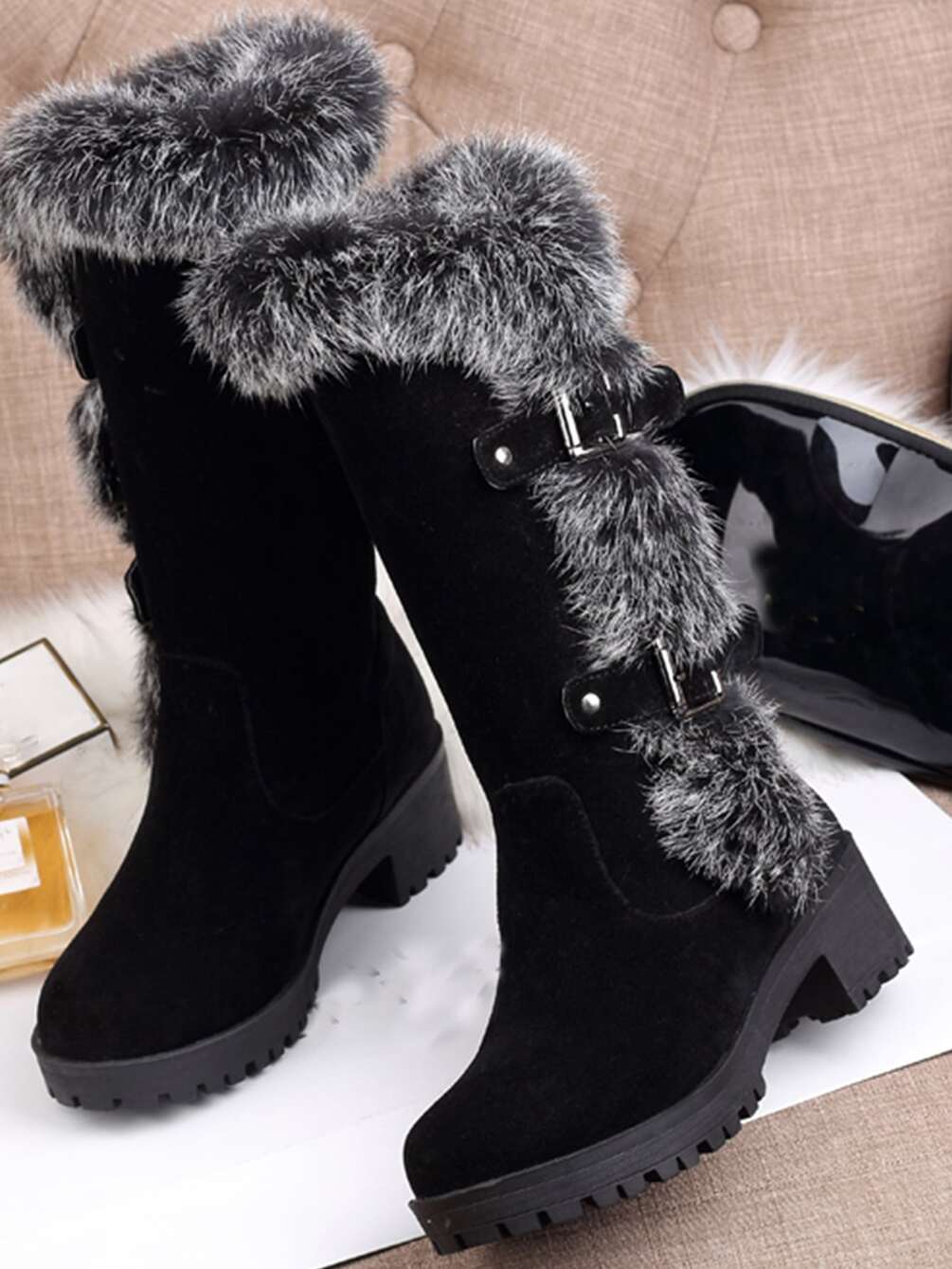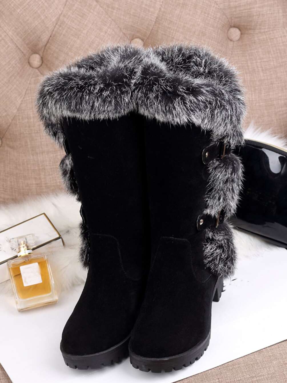 Contrast Fluffy Faux Suede Buckle Decor Combat Boots