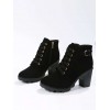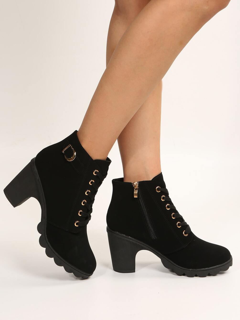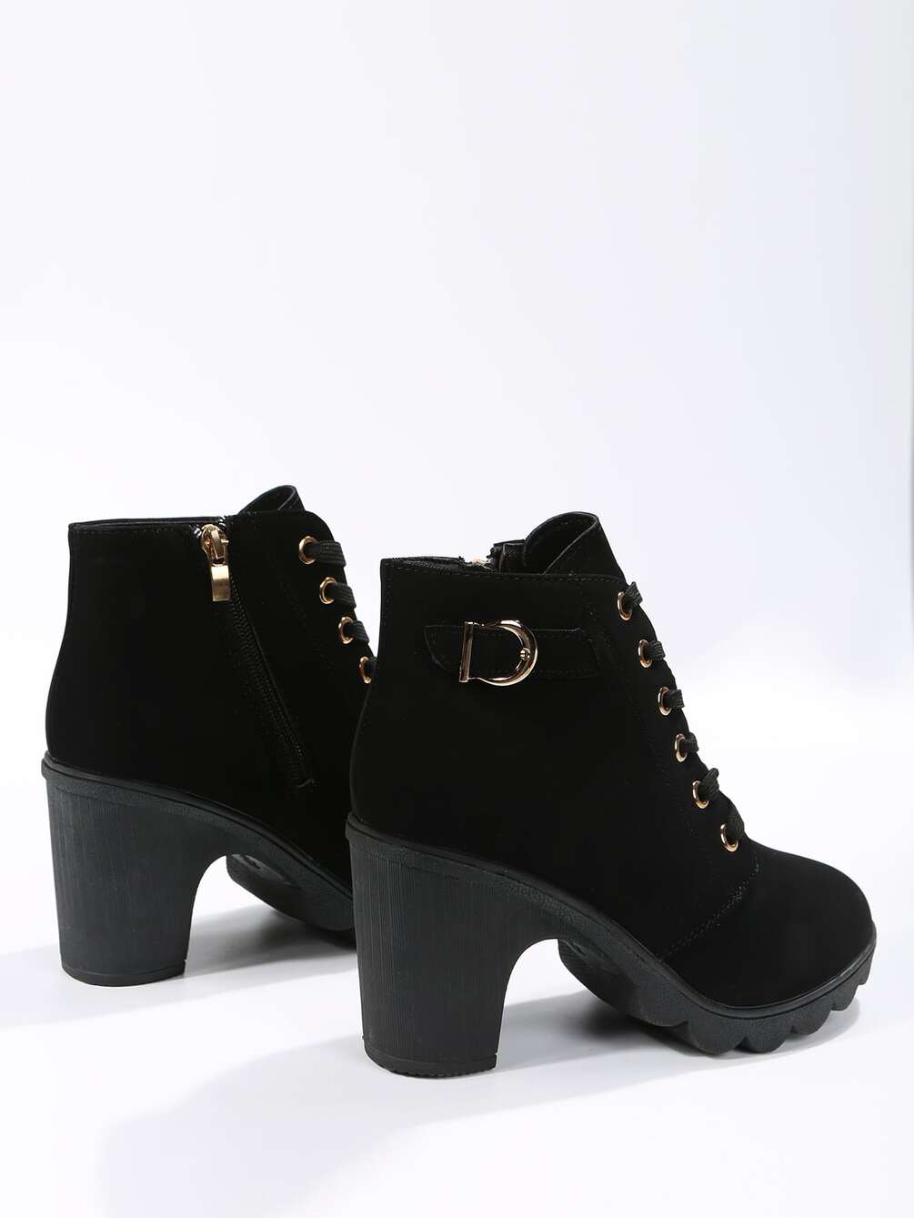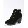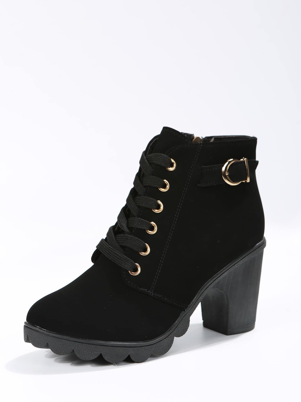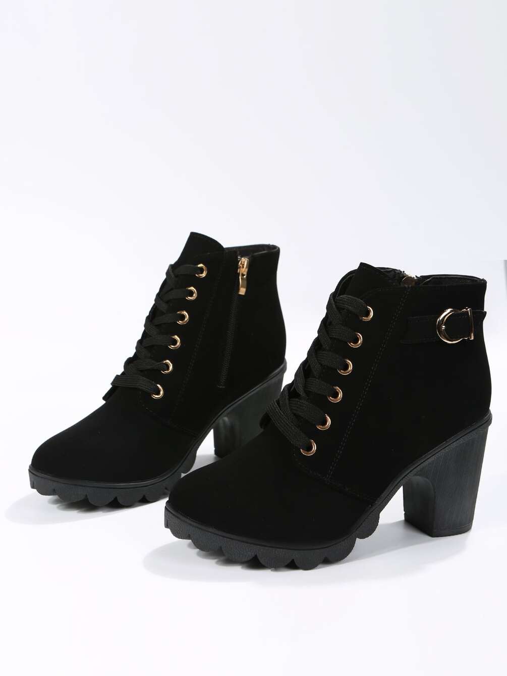 Women Lace Up Buckle Detail Side Zip Chunky Heeled Combat Boots