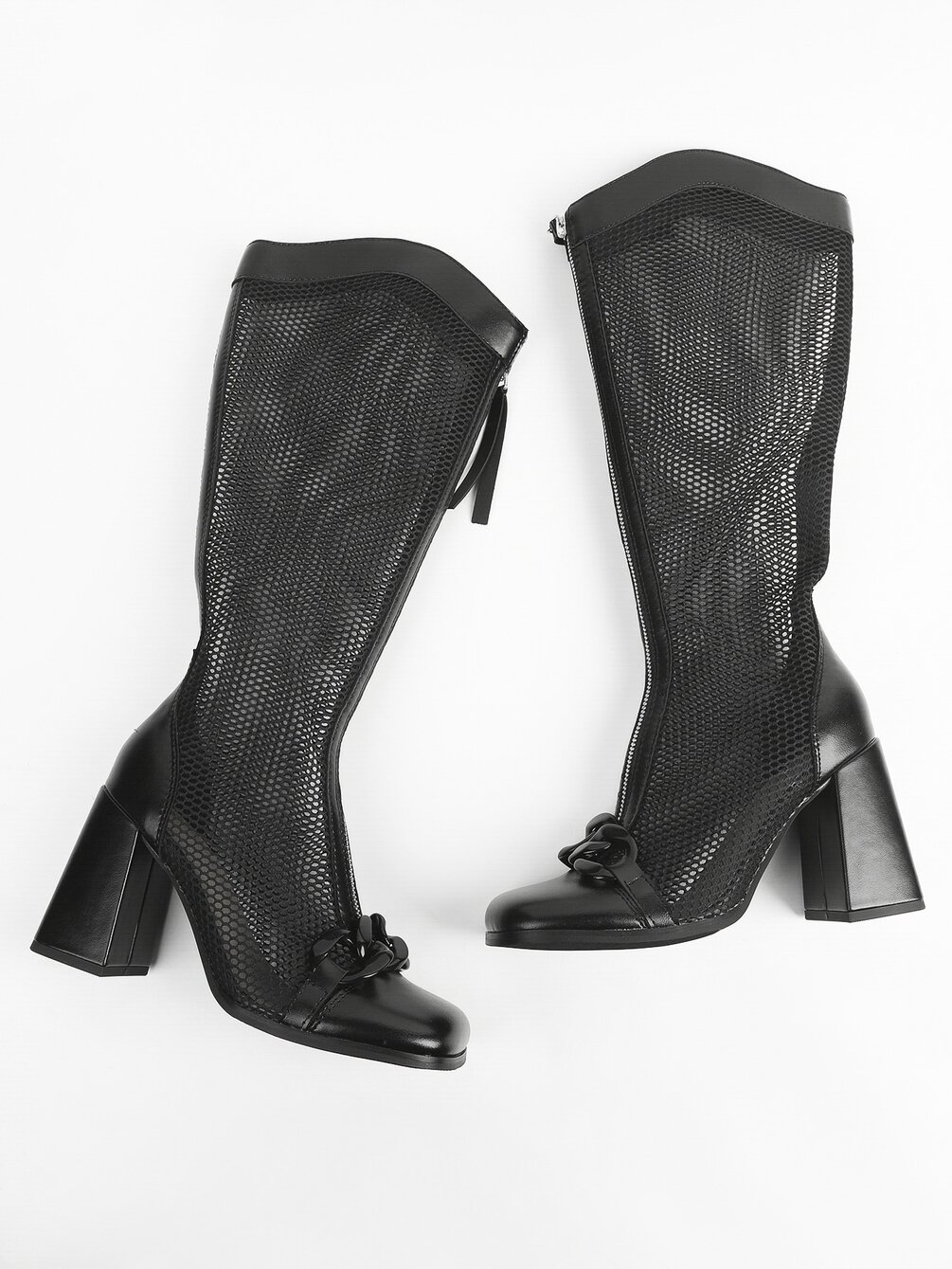 Women Zip Front Chain Decor Sandal Boots, Punk Outdoor Mesh Fashion Boots