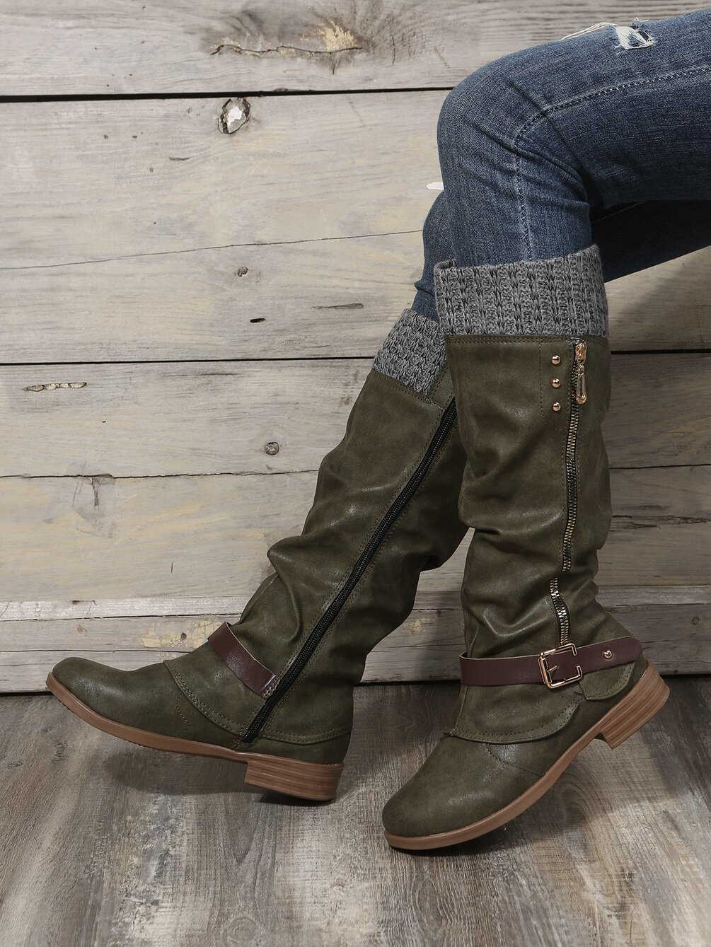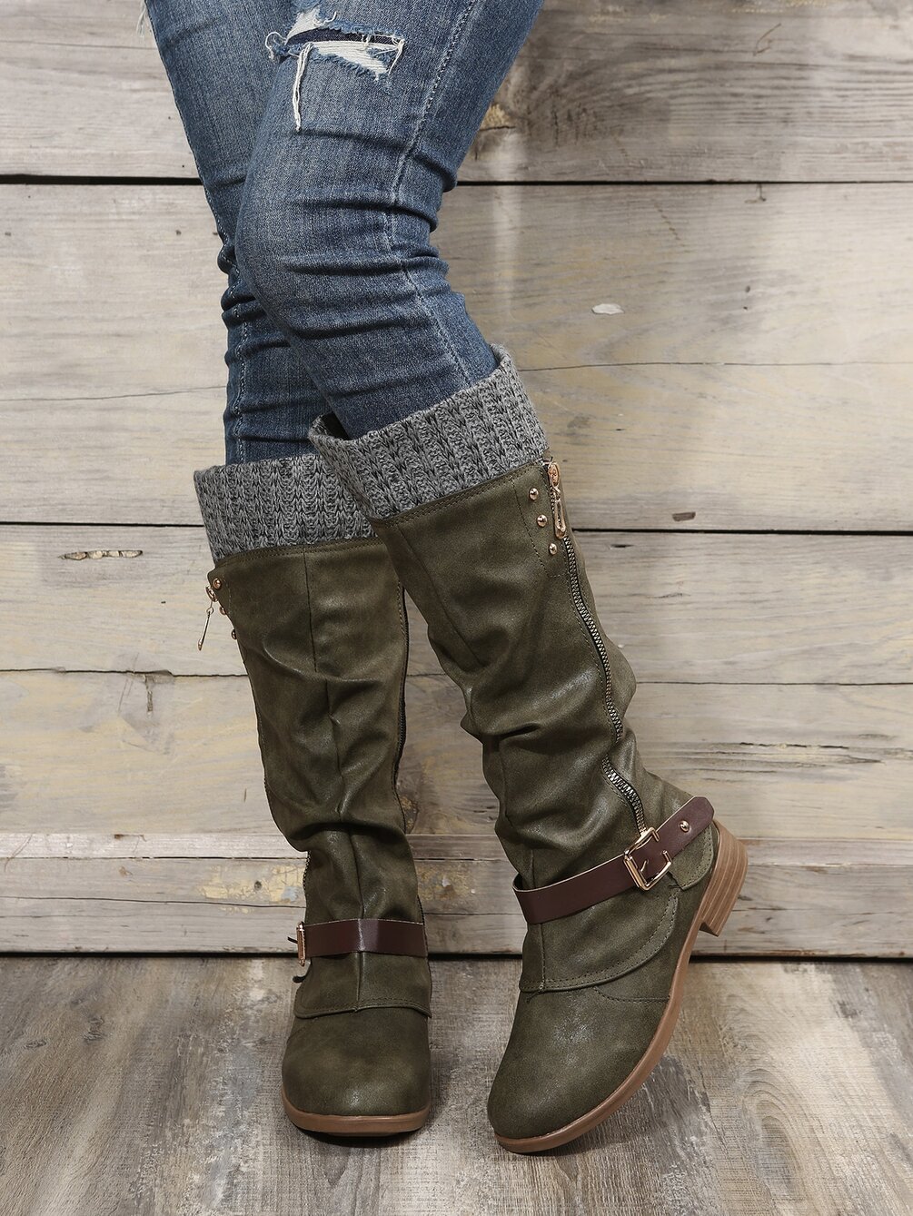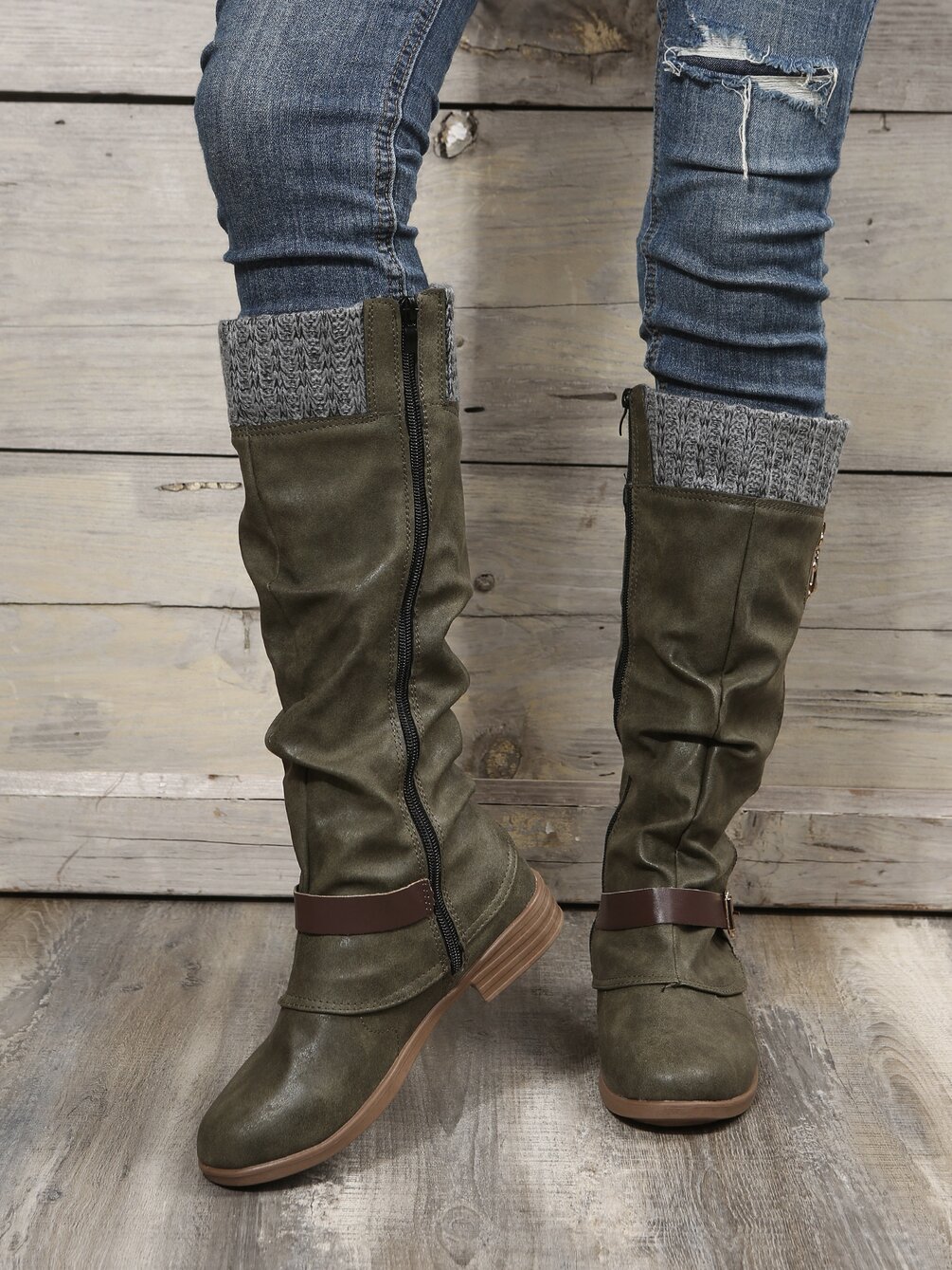 Buckle Decor Zipper Side Slouchy Boots