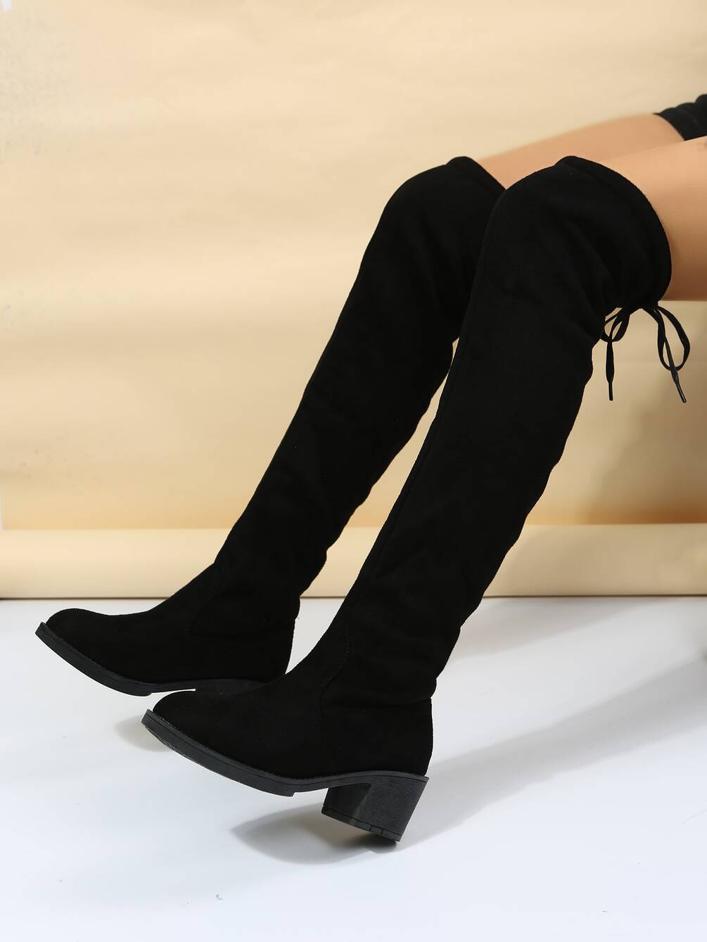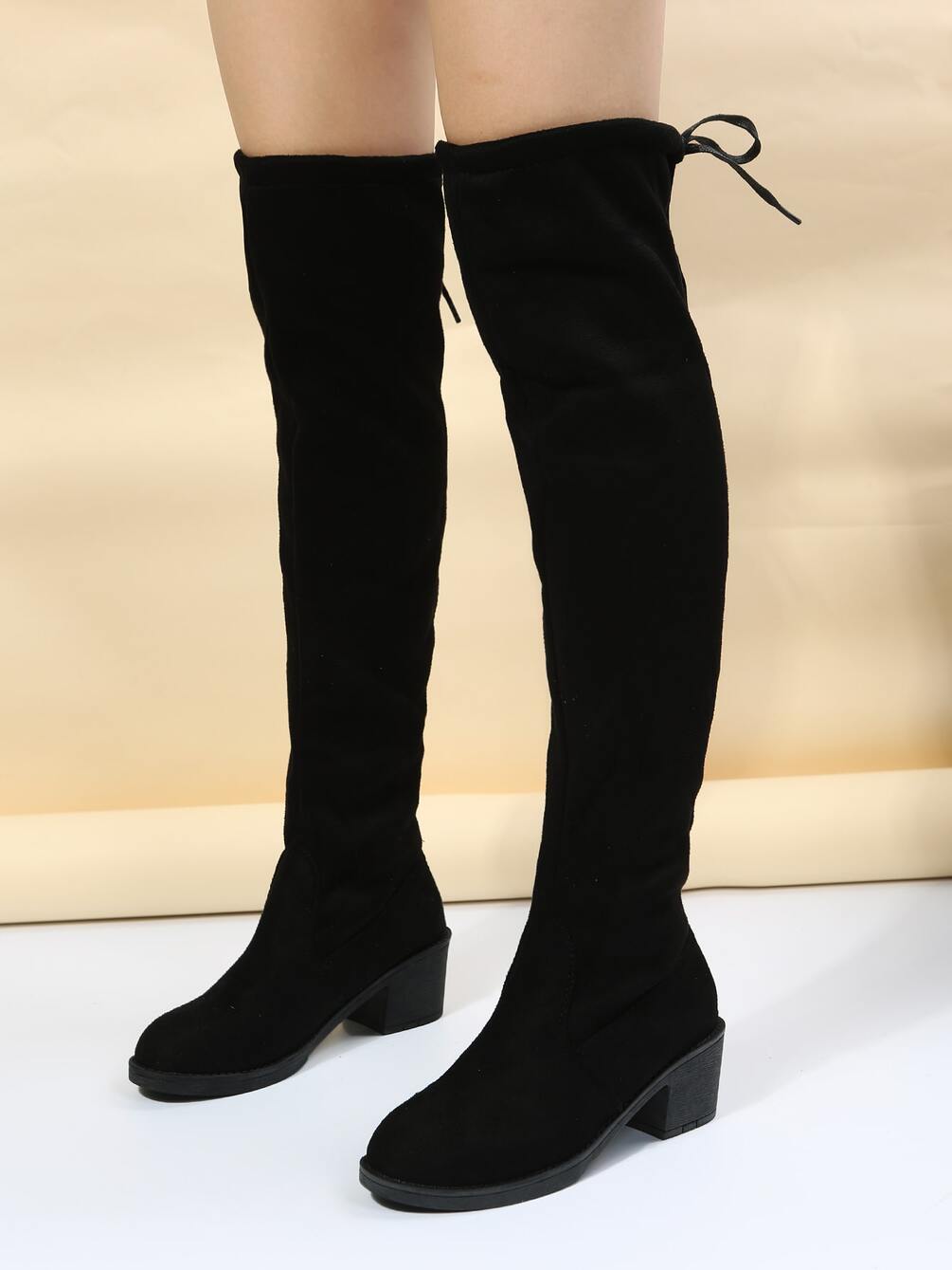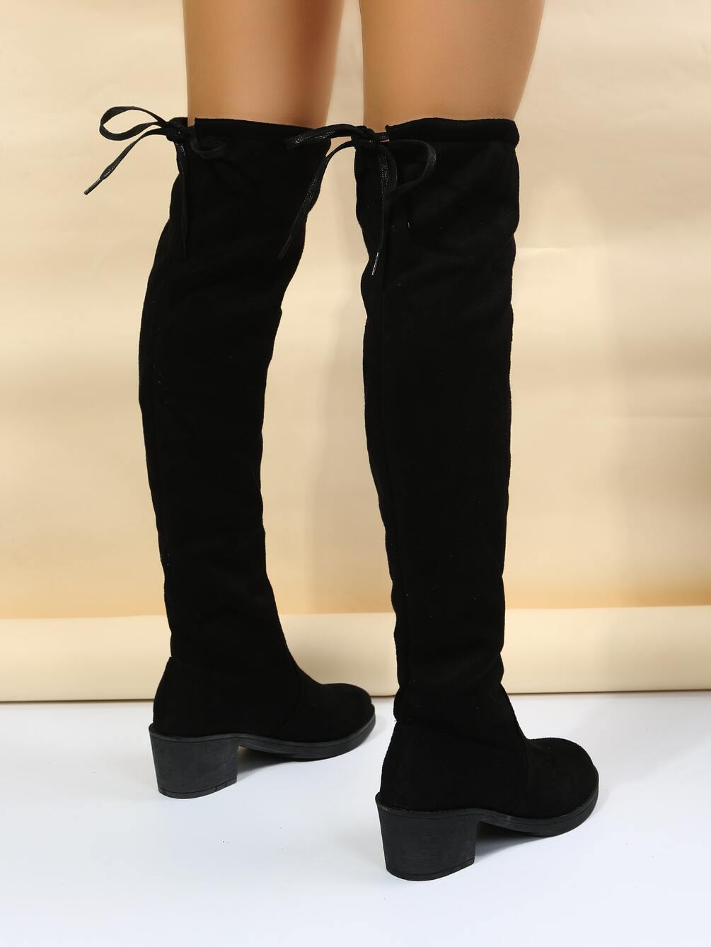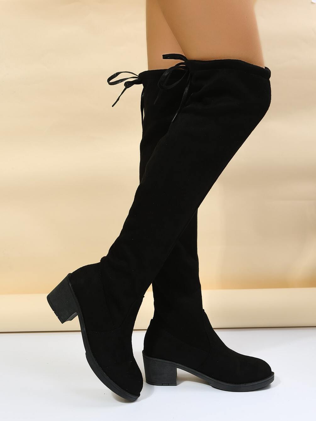 Faux Suede Lace-up Back Design Sock Boots